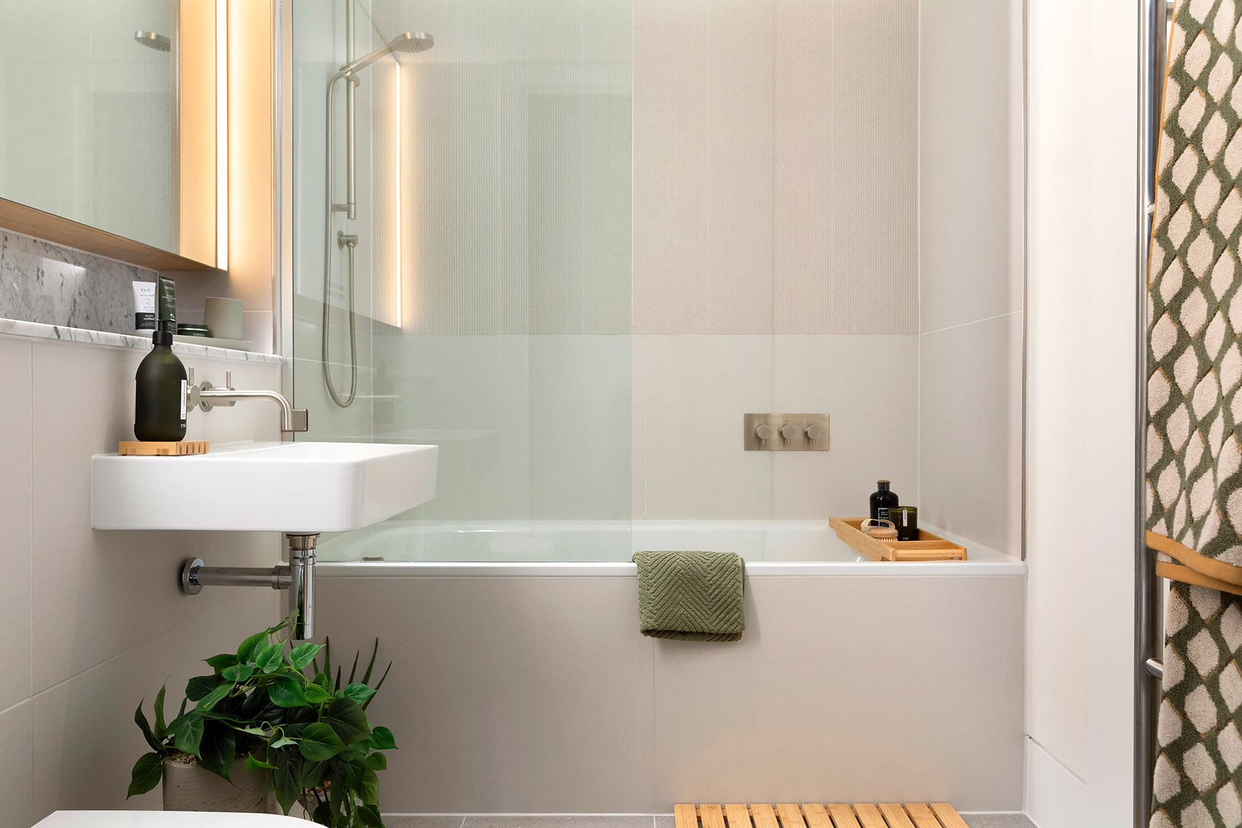 This elegant two-bedroom apartment captures the character and energy of its setting, defined by exceptional quality, refined craftsmanship and thoughtful design. A generously proportioned open-plan reception, dining and kitchen space creates a sophisticated contemporary living environment, enhanced by floor-to-ceiling glazing that fills the apartment with natural light.
