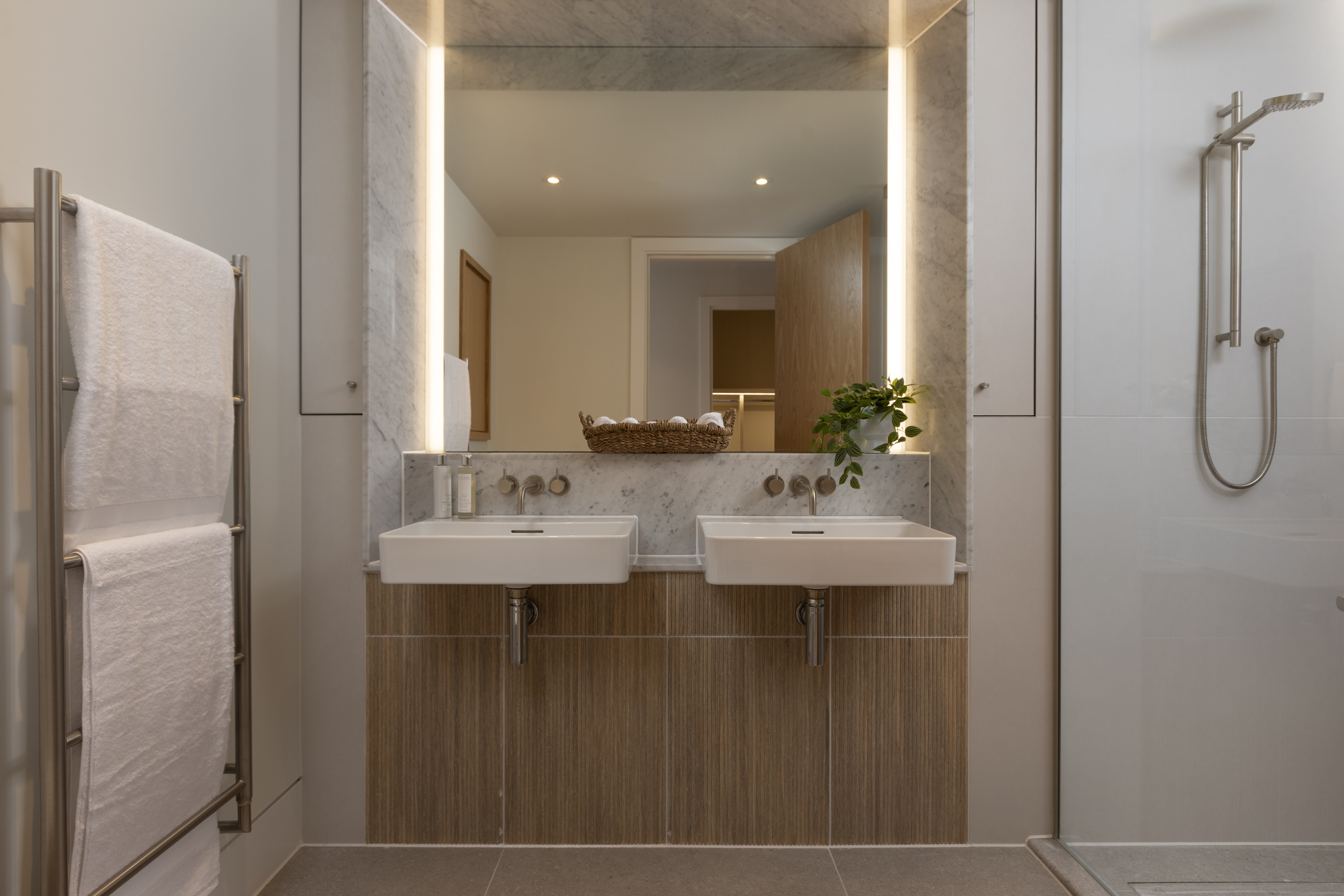 This three bedroom apartment reflects the spirit and vibrancy of its location with the hallmarks of quality, craftsmanship and originality. The open plan reception, dining room and kitchen provides a contemporary living experience which leads to the private terrace with lawned area. Floor-to-ceiling windows flood the apartment with natural light. Facing north east the apartment enjoy spectacular views towards the Firth of Forth and beyond.